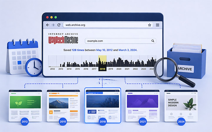 Eden izmed najbolj uporabnih načinov preverjanja je pregled arhiviranih različic spletnih strani. Obstajajo spletni arhivi (npr. Wayback Machine), ki hranijo posnetke strani skozi čas, zato lahko vidimo, kako je domena izgledala v preteklosti. Na ta način dobimo jasno sliko o vsebini in namenu uporabe.